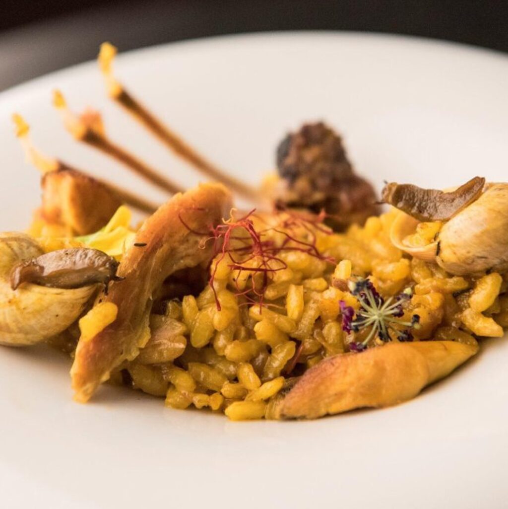El arroz con conejo silvestre y caracoles serranos, con ingredientes de calidad y frescos de la tierra, es un plato tradicional cocinado al sarmiento, donde las llamas envuelven el arroz para dar un toque ahumado, que sin duda, no puedes perderte. Este plato de arroz de alicante ha enamorado a miles de personas por su melosidad y explosión de sabores perfectamente equilibrados para el paladar.