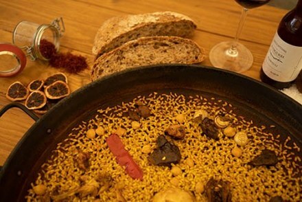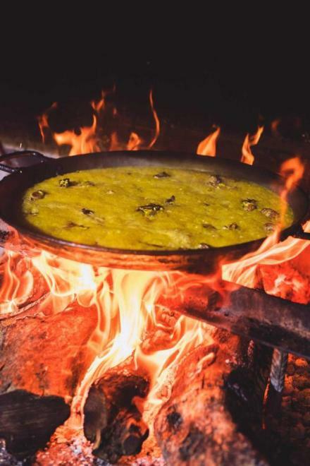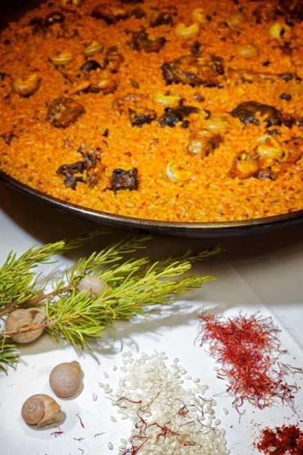 En Ginebre se cocina el auténtico y tradicional arroz con conejo y caracoles al sarmiento a la vista del cliente, con un sabor y un aroma especial.